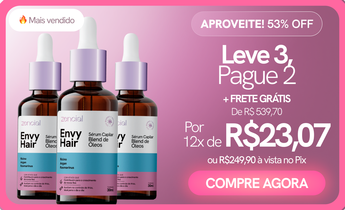 A fórmula do Envy Hair é OFICIALMENTE a única do mercado que une os melhores nutrientes em concentrações precisas para um tratamento completo, eficaz e que proporciona resultados visíveis em apenas 30 dias!