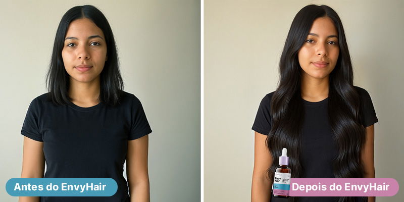 Enquanto produtos comuns apenas disfarçam o problema, o Envy Hair trabalha para aumentar a densidade capilar real, ativando folículos dormentes e estimulando o nascimento de novos fios. O resultado é uma transformação visível na espessura e volume dos seus cabelos.