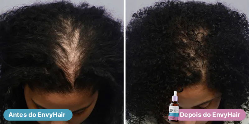 "Depois do tratamento do câncer, meu cabelo ficou super frágil, ralo, e tive a perda total dos cabelos. Ganhei um EnvyHair de presente da minha filha. Super fácil de aplicar, aplicava em todo o coro cabeludo e massageava… e nossa! Meu cabelo começou a crescer. Os primeiros fiozinhos começaram a aparecer após poucas semanas de uso Achei que logo fosse cair, mas não, nasceram fortes. A aprendi a conviver com a aparencia sem cabelos, mas me incomodava. Hoje olho no espelho e vejo meu cabelo voltando, cheio de vida. Esse óleo é um presente.